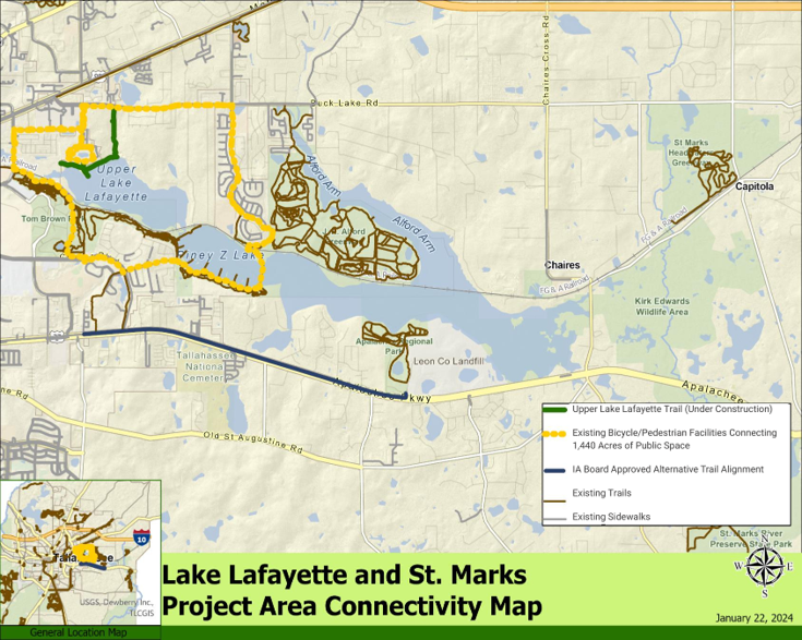 The project goal includes key trail connections to area amenities, including Tom Brown Park, Lafayette Heritage Park, St. Marks Headwaters, and the Apalachee Regional Park.