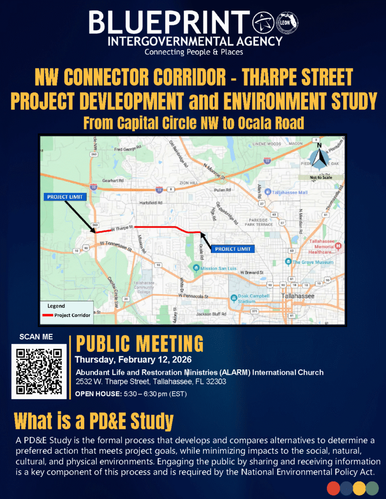 The Northwest Connector provides funding to improve Tharpe Street from Ocala Road to Capital Circle Northwest. The project also improves access to Old Bainbridge County Park near Tower Road, and Stoneler Road County Park, on Stoneler Road. It also adds approximately nine miles of additional trail and sidewalk connectivity.